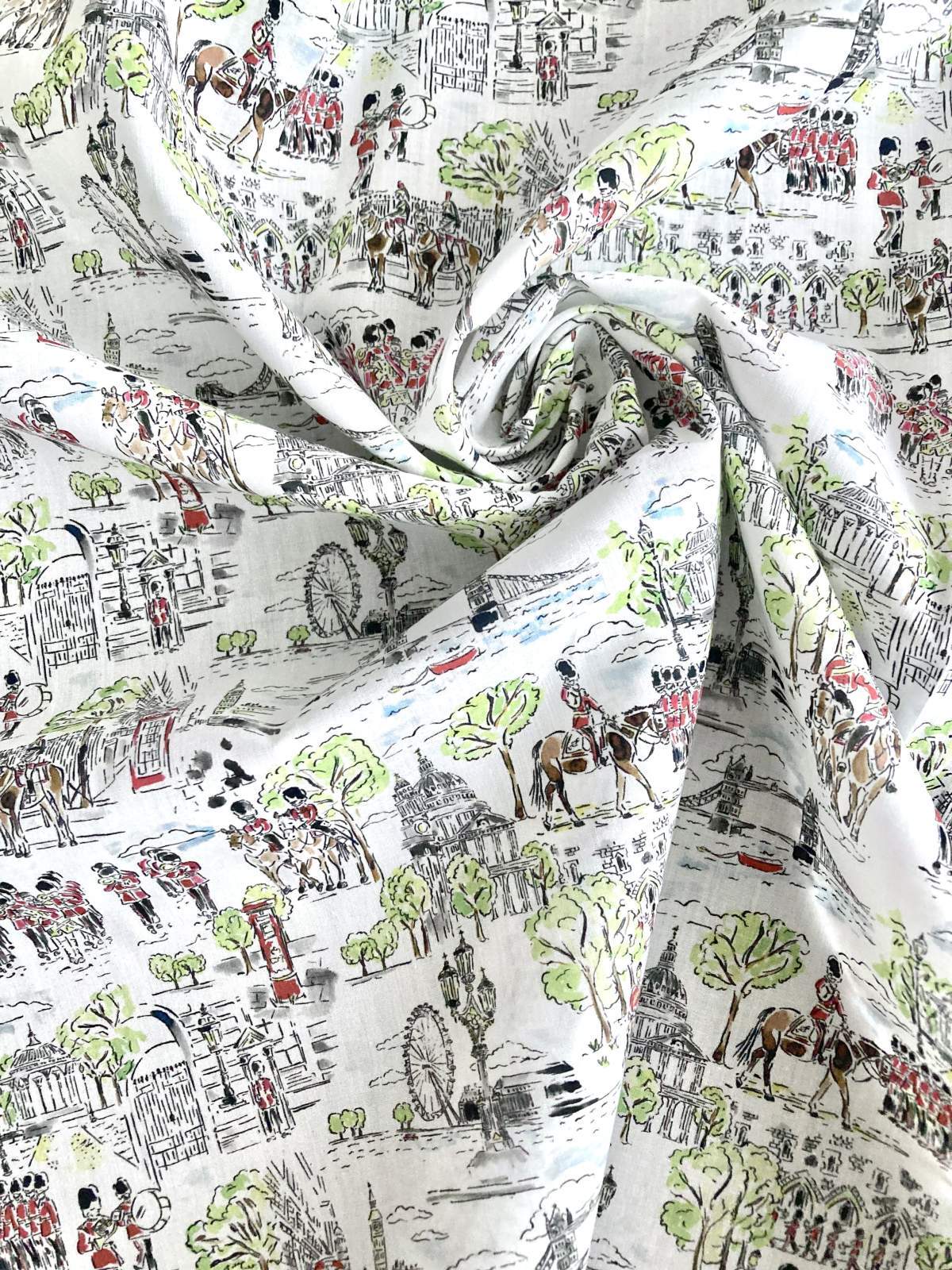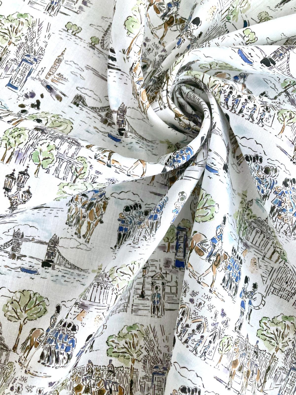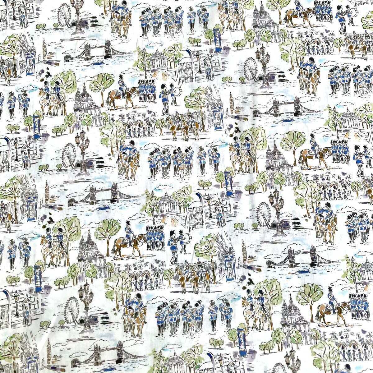 The intricately illustrated London collection is an ode to the beauty of the bustling capital city, home to the iconic Liberty flagship store and its world-renowned design studio. Discover marching regiments exploring the city’s historical architecture and stroll through London’s vibrant parks, alive with colorful spring flowers.
