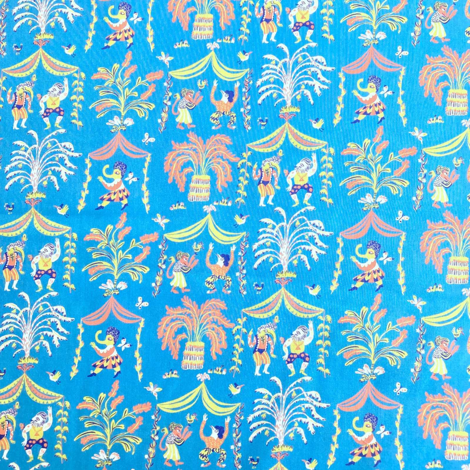 This whimsical design, created by artist and illustrator Elly Curtis, is inspired by the intricate carved wooden animals found throughout Liberty’s store. On closer inspection, dancing elephants, pelicans, monkeys, and lions can be seen celebrating Liberty’s 150th anniversary, surrounded by enchanting grand tents and fantastical plants.