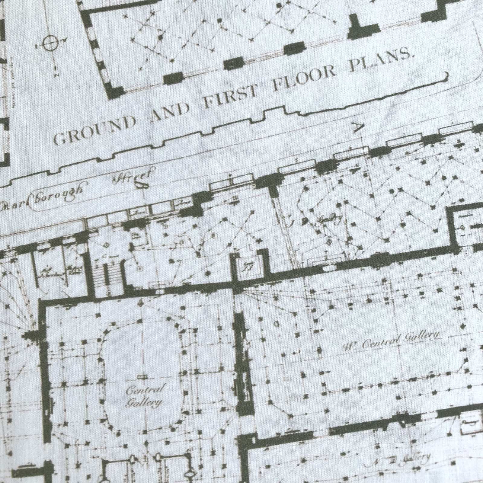 A geometric conversational design created from the original architectural plans of the Liberty store.