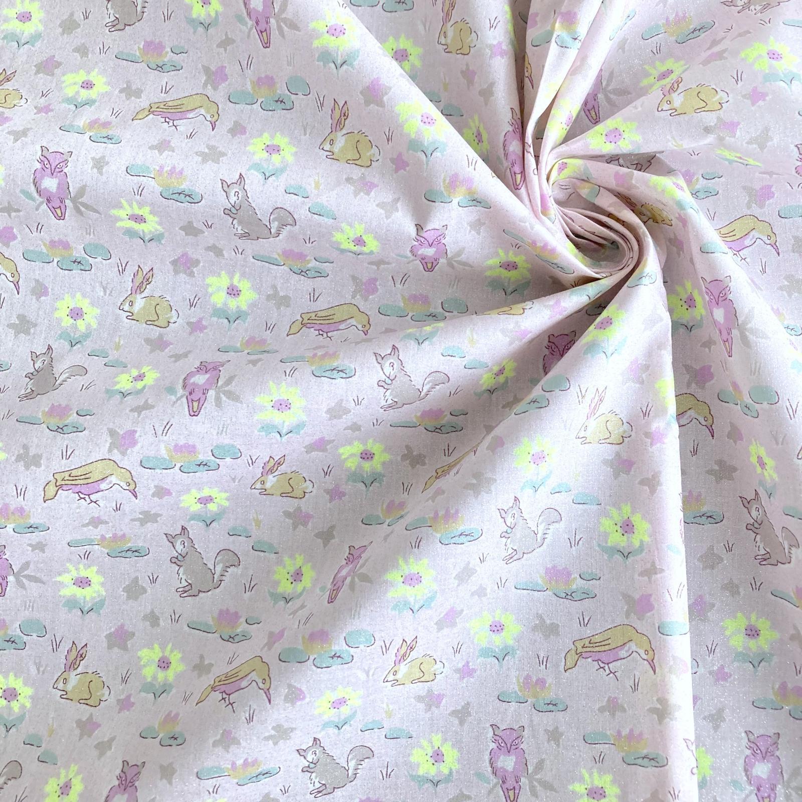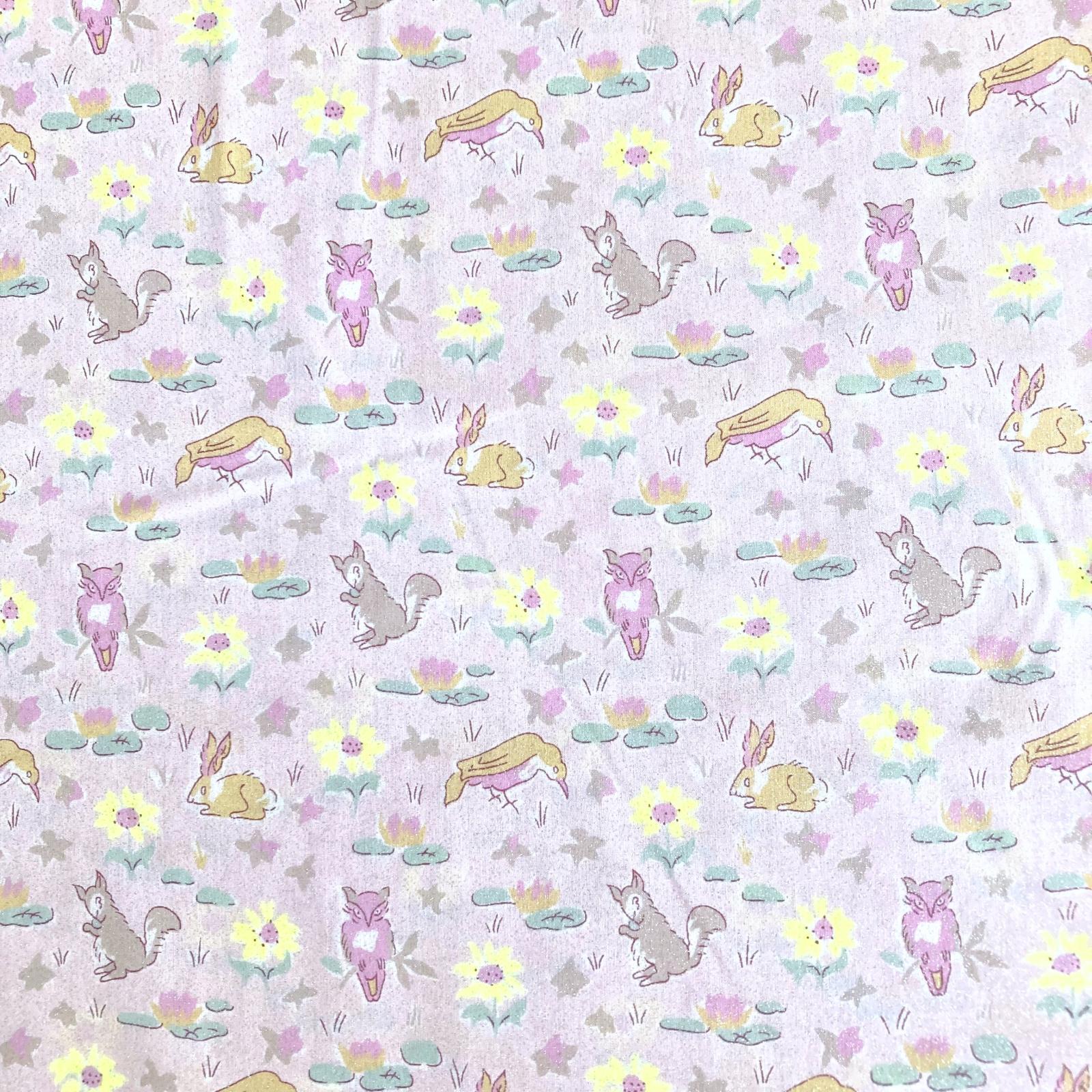 Revived for the Autumn/Winter 1989 collection, Oscar depicts woodland creatures—birds, squirrels, rabbits, and owls—playfully interacting among delicate flowers and foliage.