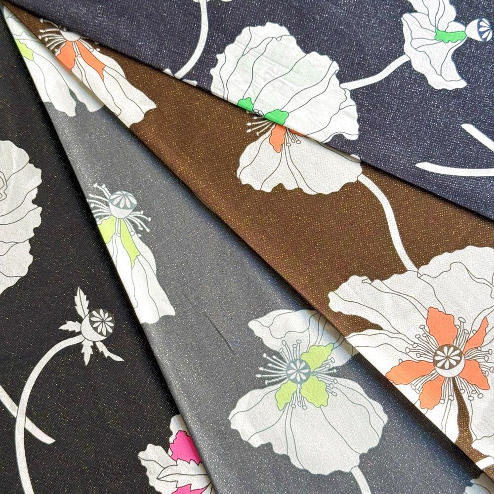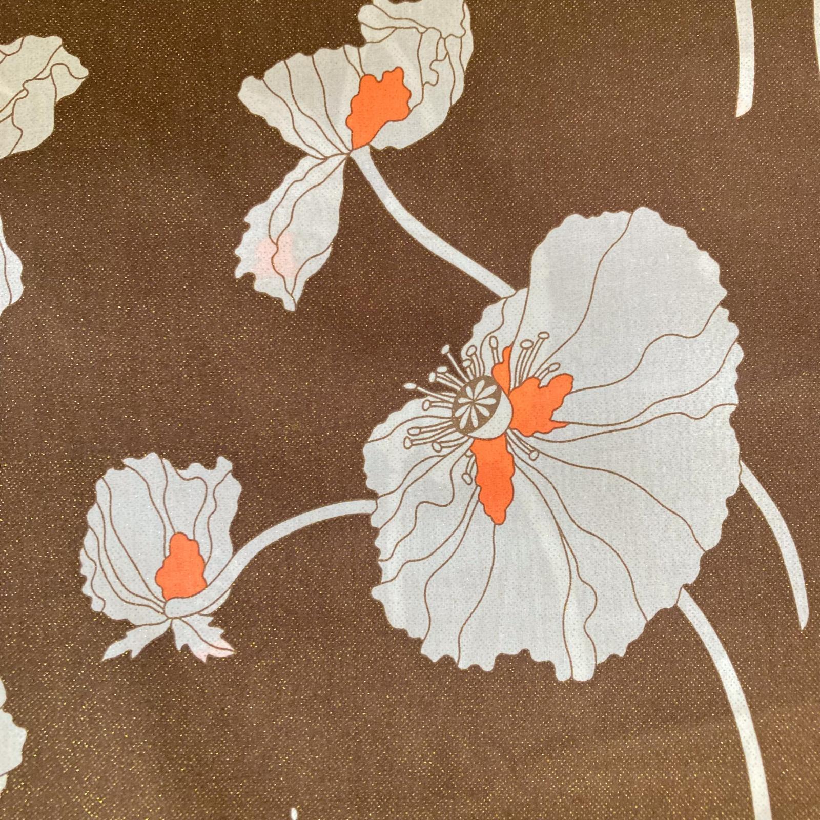In a similar approach, the poppies in this design highlight the rare and striking beauty of fading flower heads. Influenced by Japanese printmaking, the artwork is rendered with fine, delicate linework.