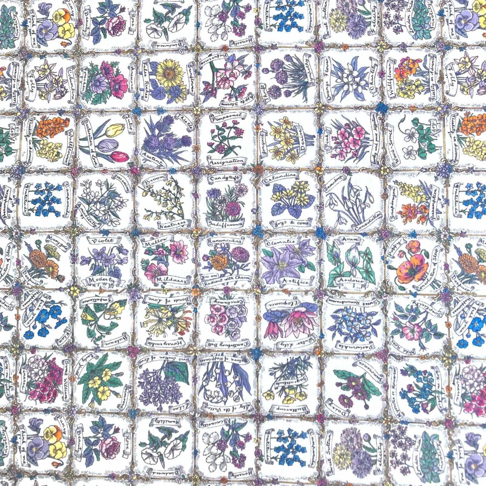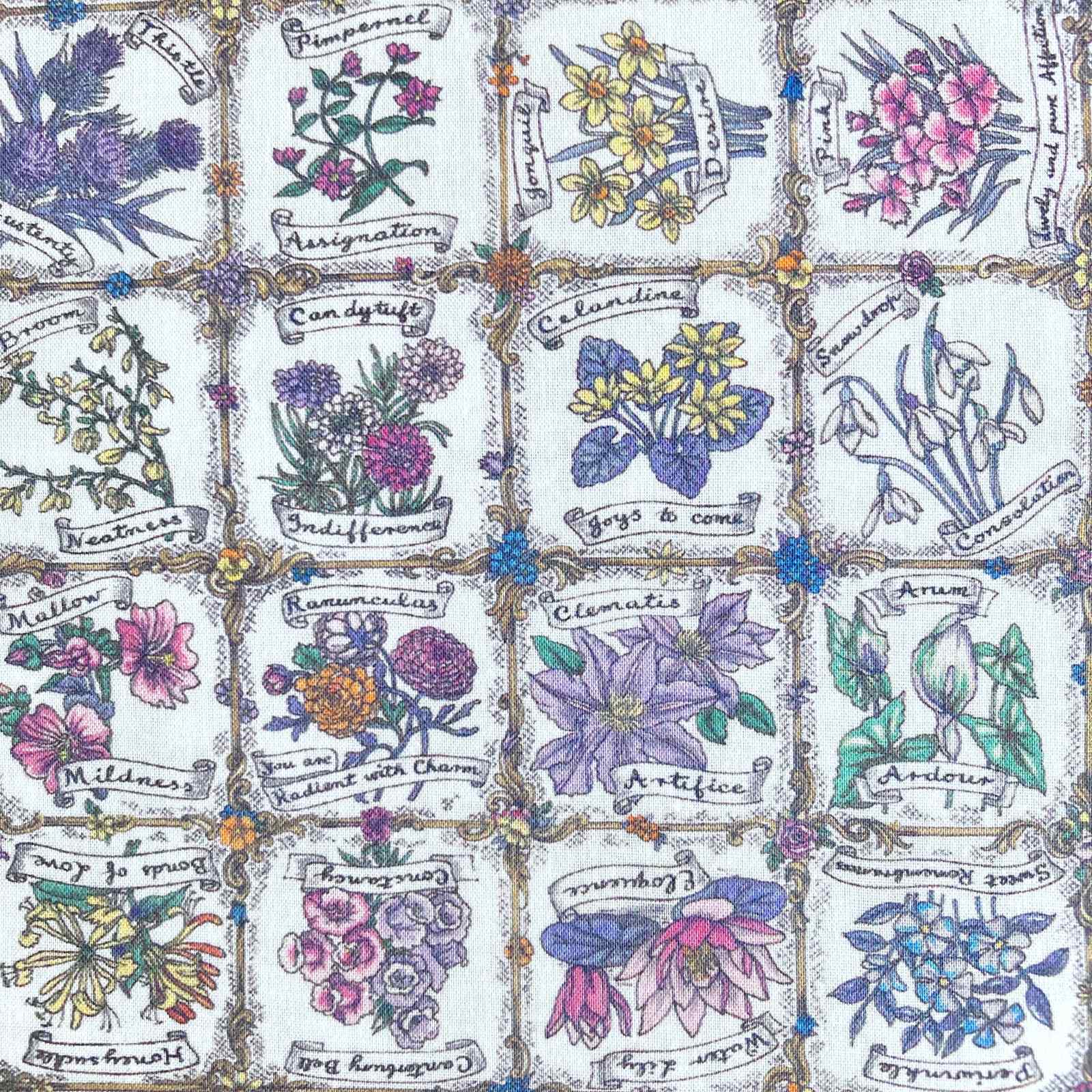 The Language of Flowers was originally printed as a Liberty scarf in 1977 and brings together a multitude of detailed botanical illustrations. Look closely to distinguish forty-nine different types of blooms, each attributed with its unique meaning, symbolism, or sentiment. Inspired by Floriography, the cryptological language of the Victorian era, this nostalgic compilation unlocks a secret floral dictionary.