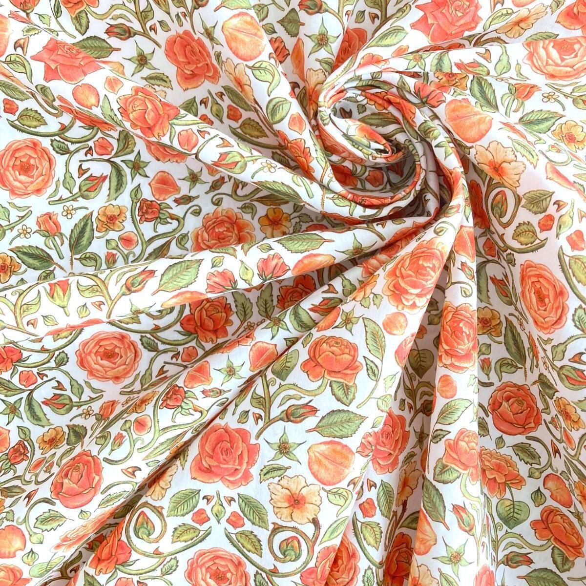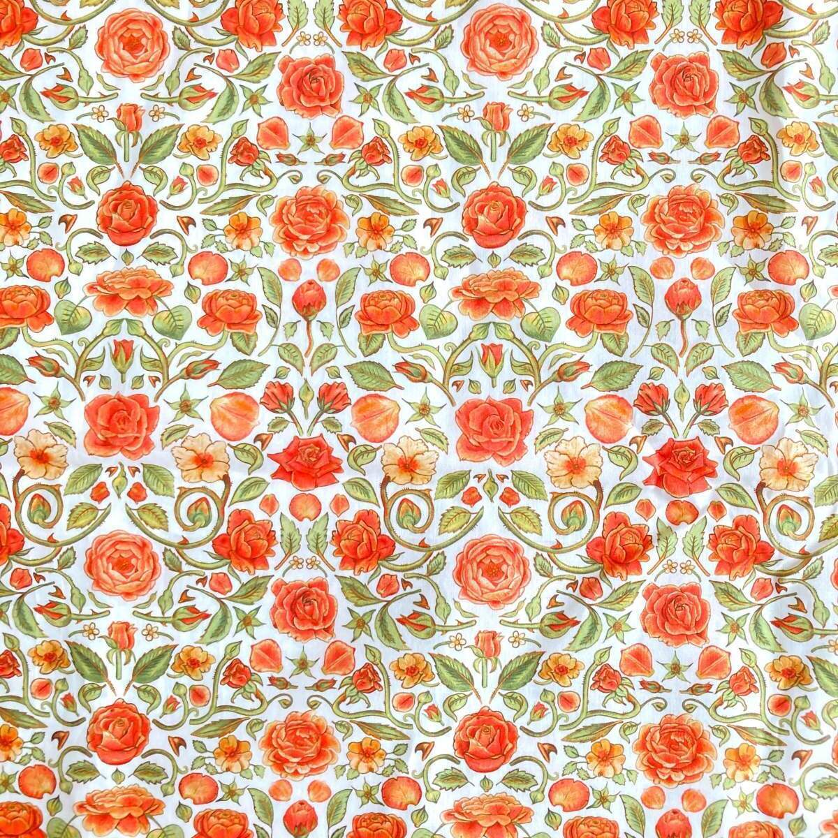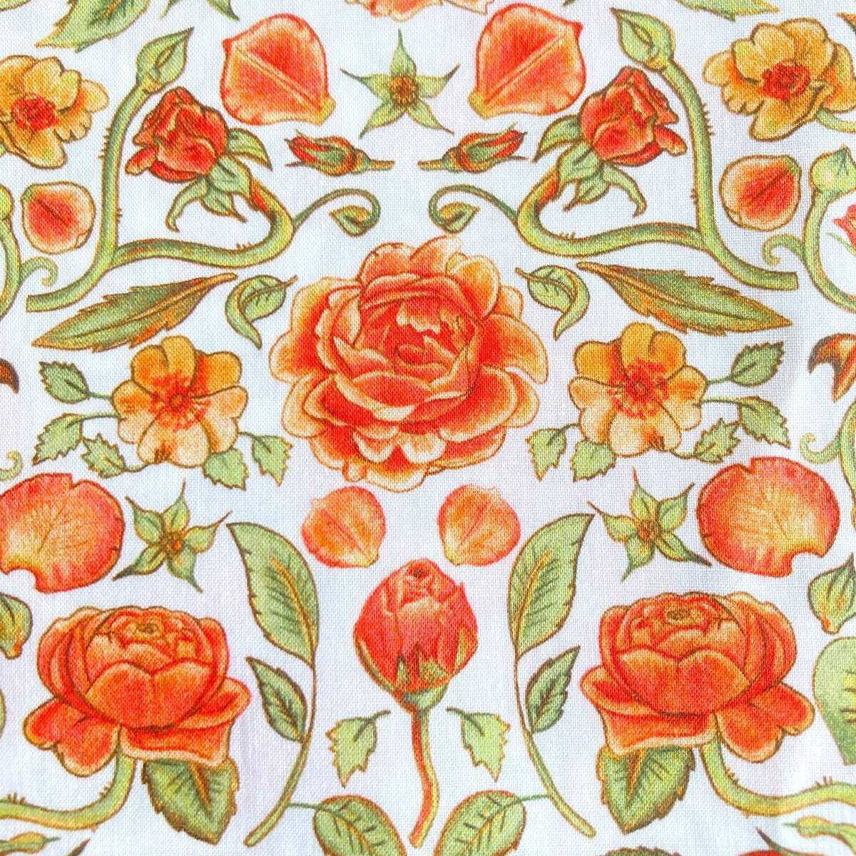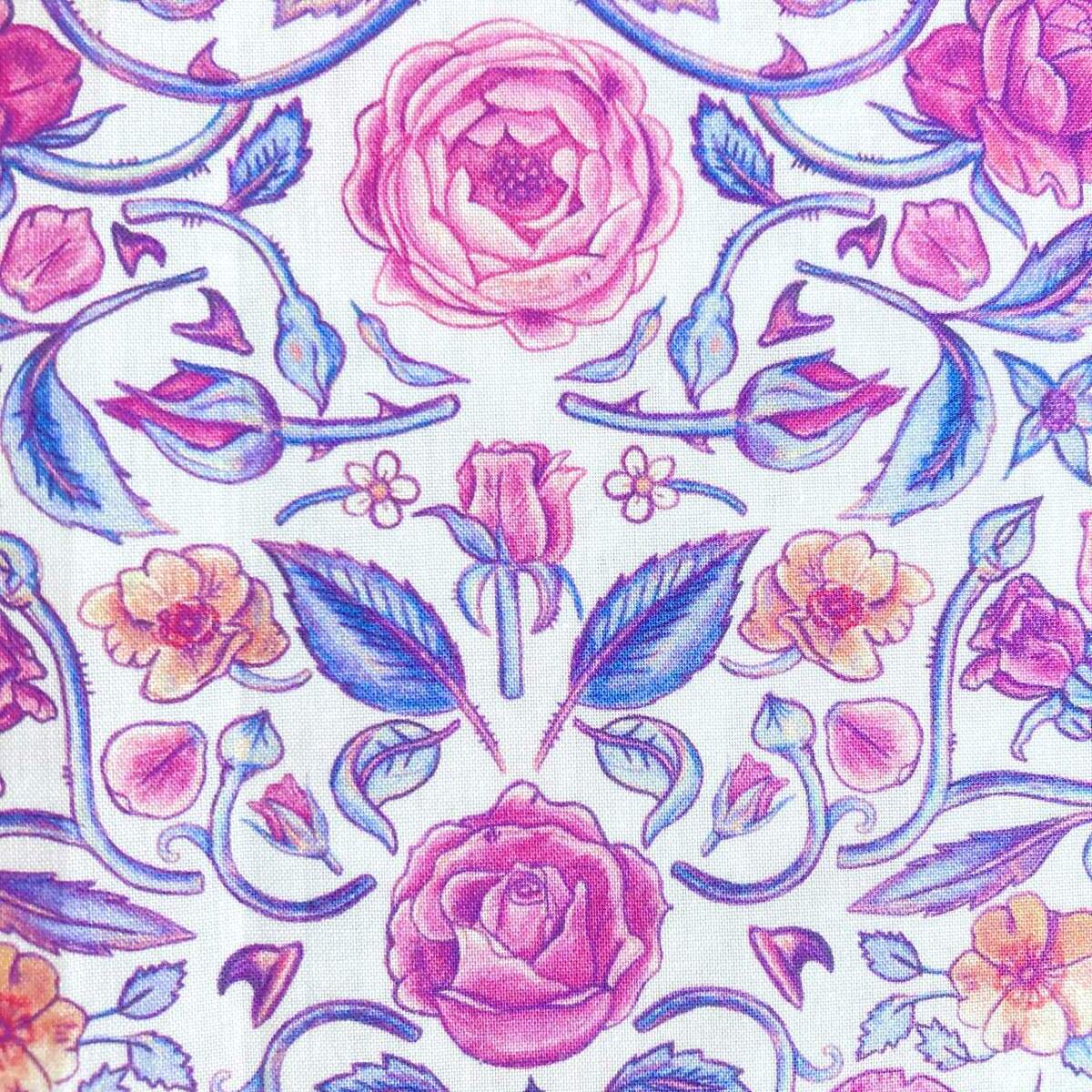 Inspired by carefully selected roses from David Austin Roses, the artwork is hand-drawn and arranged in a repeat layout that echoes the traditions of the Arts & Crafts movement.
